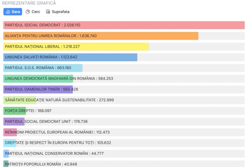 UPDATE 10.00 - Până în acest moment, au fost centralizate 20013 de procese verbale din 20059, un procent de 99,77%. Potrivit rezultatelor parțiale, PSD rămâne pe primul loc și are un procent de 22,44%, AUR pe doi cu 18,23%, urmat de PNL cu 14,33%.