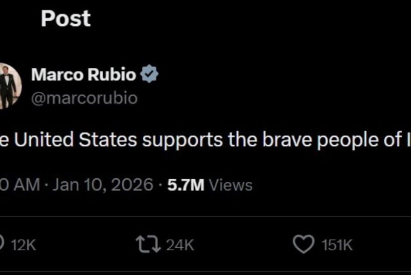 Secretarul se Stat al SUA, Marco Rubio, a postat pentru prima dată un mesaj oficial de susținere pentru iranienii care se războiescu cu autoritățile de aproape două săptămâni.